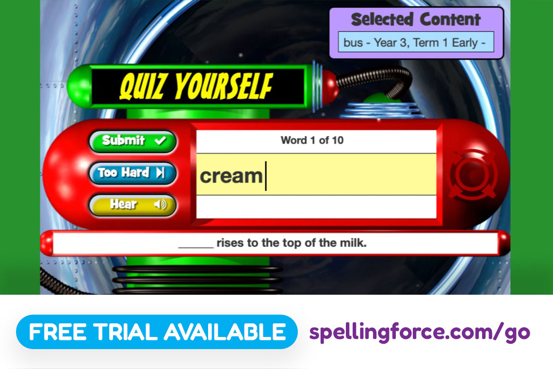 Activities include Test mode, Look Listen Learn, interactive games, powerful reports and printable worksheets. For Australians, a NAPLAN simulation mode mimics the spelling section of the NAPLAN online test.