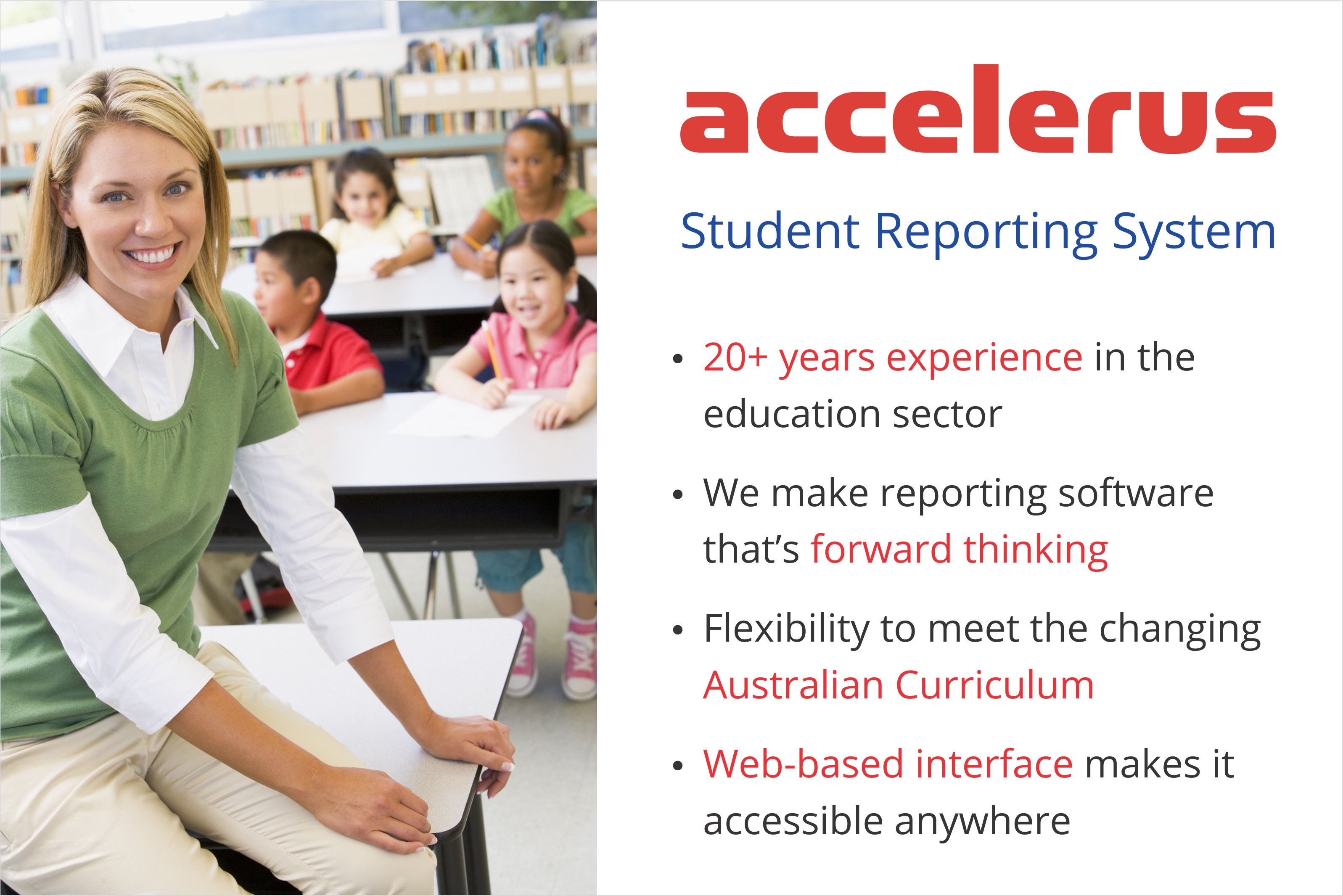 Accelerus develops the most well designed, easy to use and intuitive assessment and reporting software for schools, from foundation through to year 12, across Government, Catholic and Independent schools.