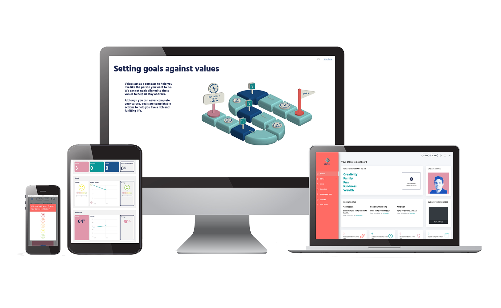 youHQ values-based goal setting helps individuals better understand & reinforce the personal qualities that they aspire to & wish to cultivate. Use our techniques based on cognitive behavioural therapy to compliment & automate pastoral guidance.